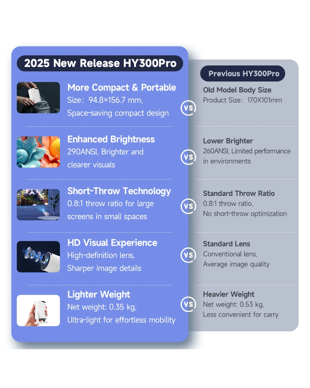 Experience brighter visuals, better portability, and more value compared to other mini projectors.